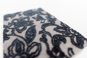 フローラルブラックは、グレー地に黒の花模様が上質な雰囲気を醸し出しています。光沢のある模様とリネン生地のナチュラルな風合いが上品な印象を与え、フォーマルからカジュアルまで幅広く活躍します。