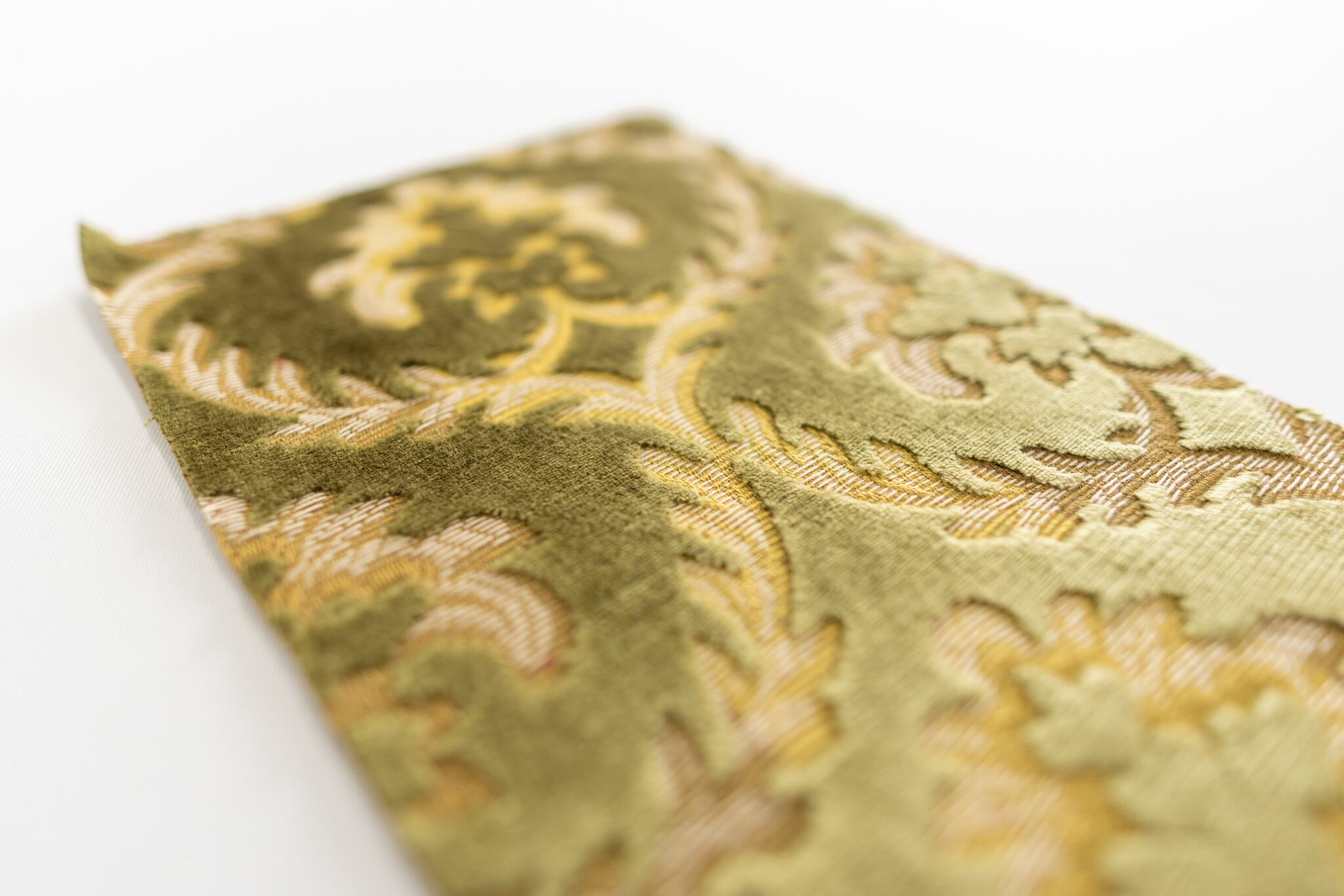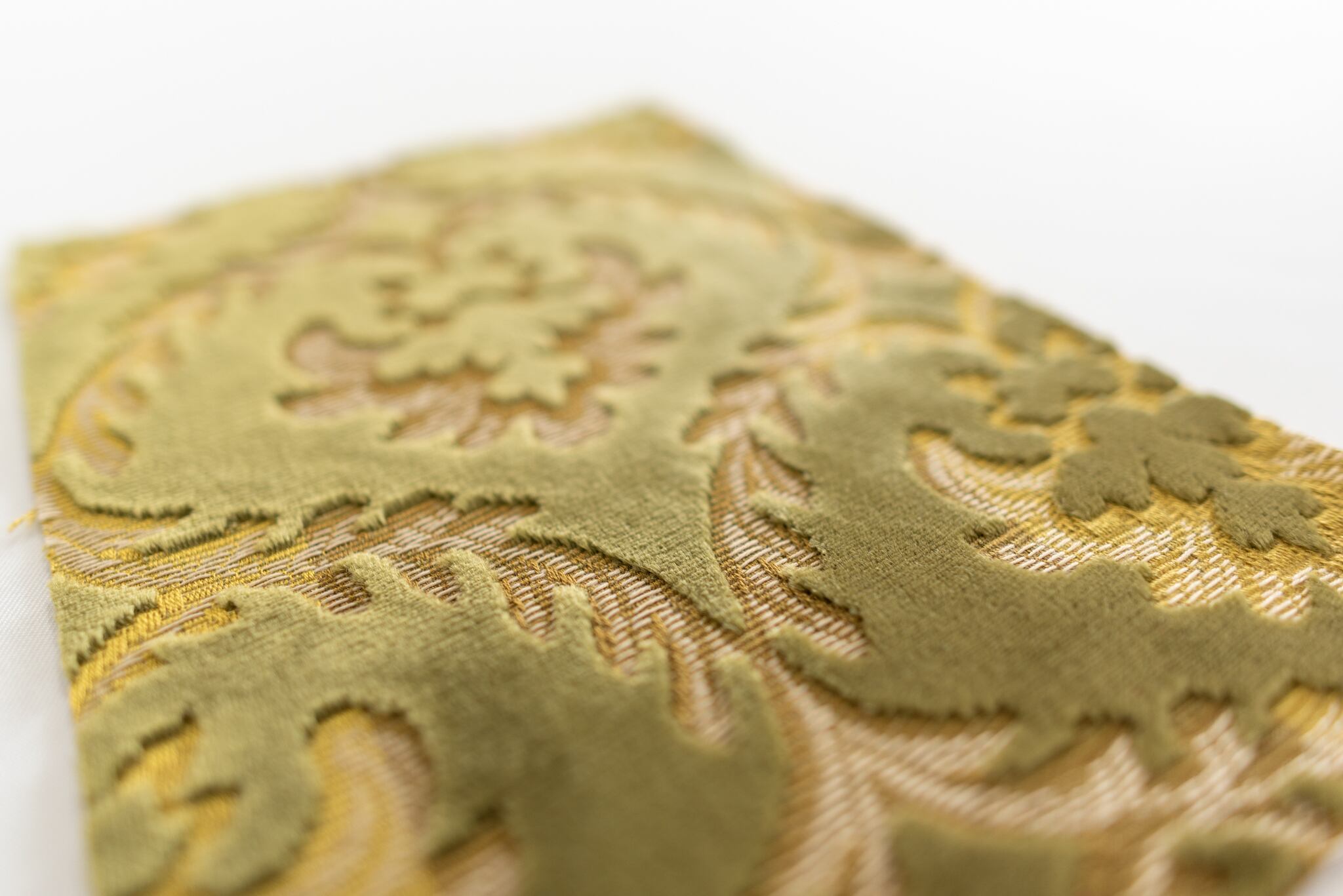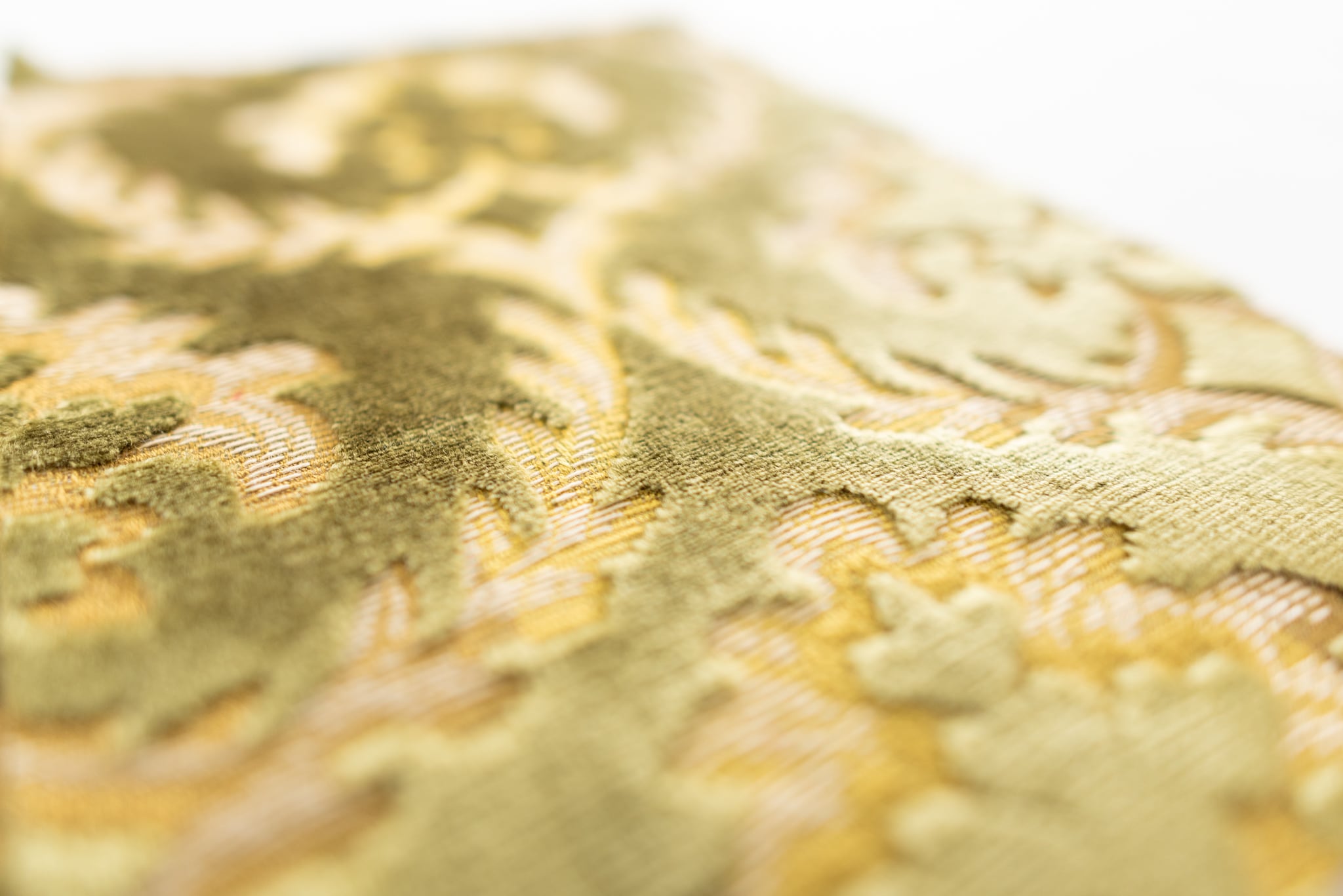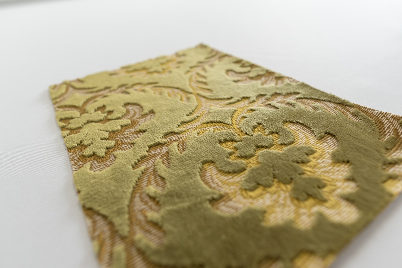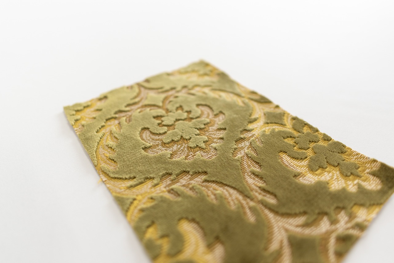 グリーンは、アラベスクの幾何学的に配置された模様が、上質な雰囲気を出しています。光の当たり具合で表情がかわる、厚みのあるモケット生地は個性を大切にしたい方に好まれます。